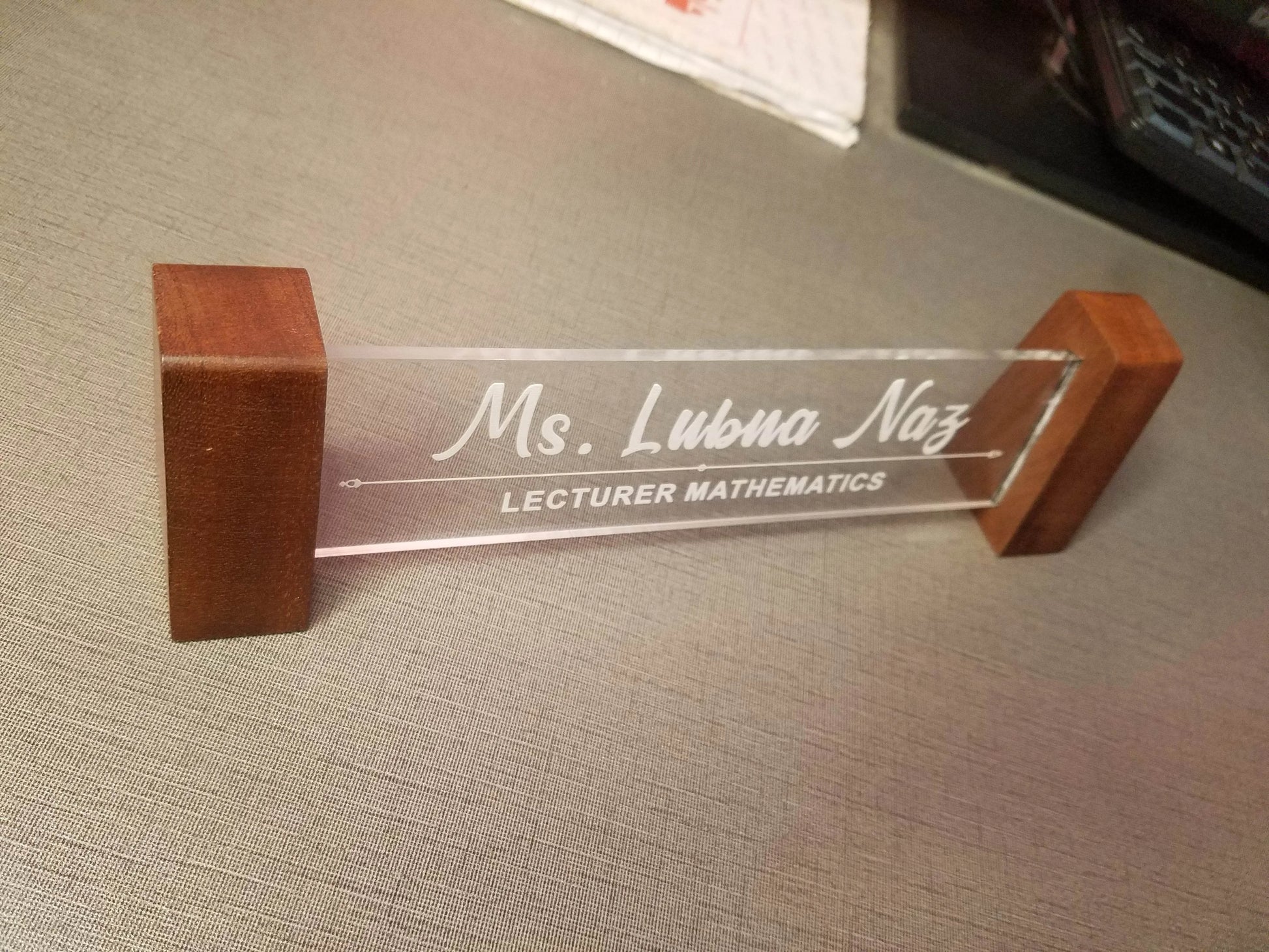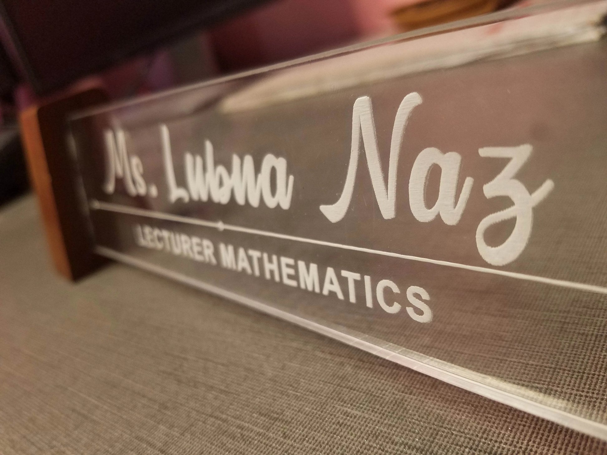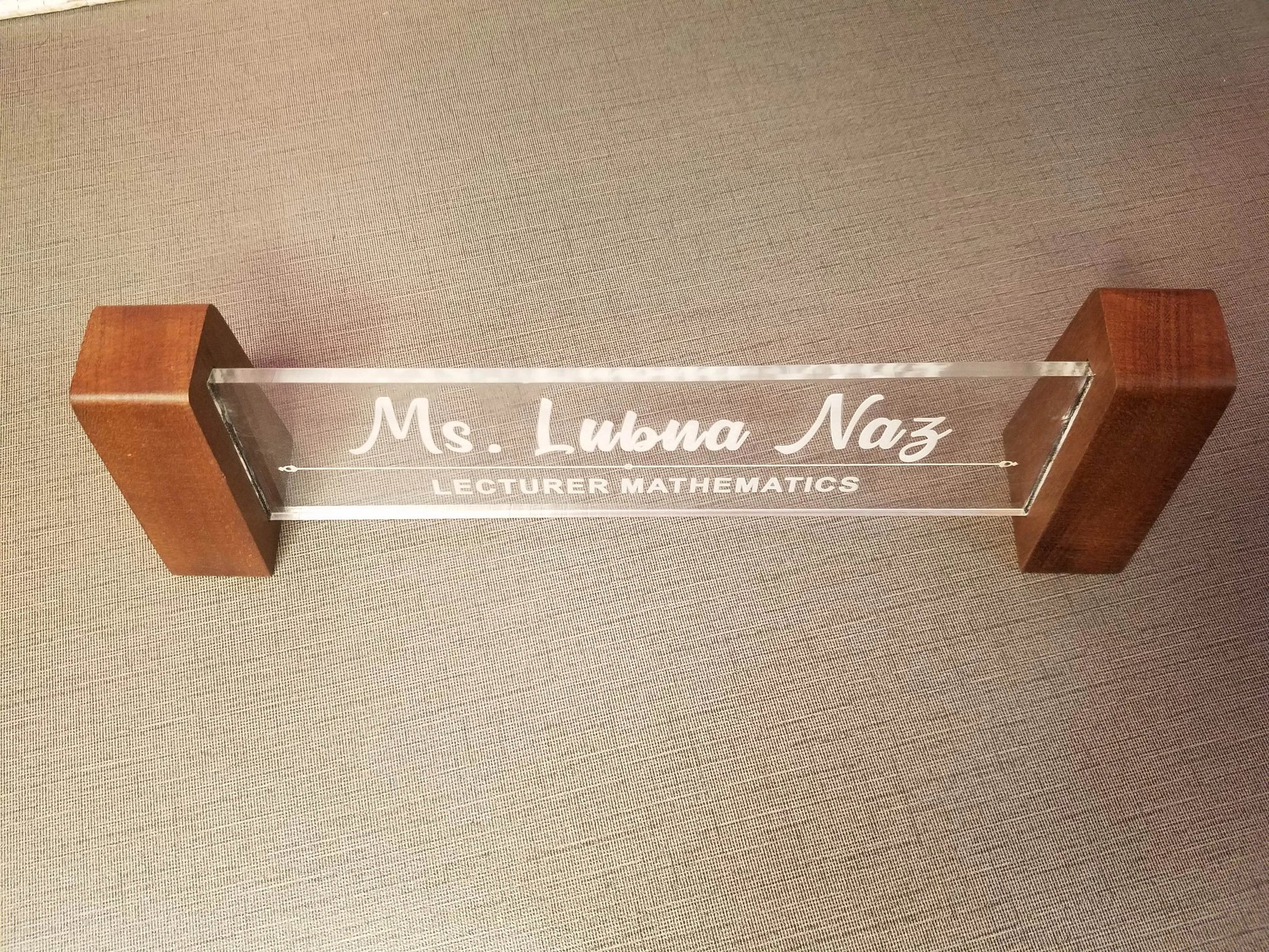 Yeh custom acrylic name plate un logon ke liye best choice hai jo apne office desk accessories, personalized desk name plates, ya custom wooden name tag dhoond rahe hain. Aaj hi order karein aur apne workspace ko ek professional aur elegant touch dein.